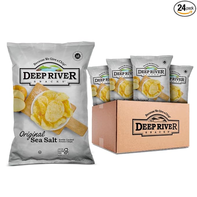 Link to Product: Deep River Original Sea Salt Kettle Cooked Chips 2 oz Pack of 24 Gluten Free Potato Snack Premium Quality Healthy Crunchy Treat Perfect for Parties Lunches and OntheGo Snacking