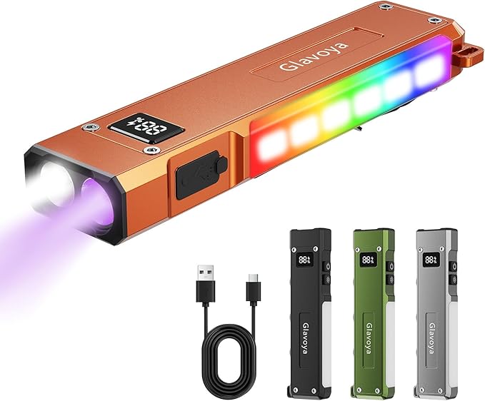 Link to Product: EDC Flashlight Rechargeable1200 Lumens Ultra Bright Flat Flashlight with 9 Modes Portable Pocket Flash Lights with UV LightMagnetic Flash Light for Working