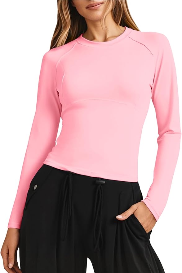 Link to Product: Fisoew Womens Long Sleeve Workout Tops Athletic Shirts Crew Neck Compression Yoga Active T Shirt
