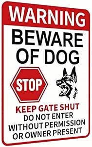 Link to Product: Funny Beware of Dog Sign Warning No Trespassing Keep Gate Closed Do Not Enter Without Permission 8x12 Inch Aluminum Sign Perfect for Yard Fence and Garden D�cor
