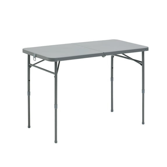 Link to Product: Mainstays 40"L x 20"W Plastic Adjustable Height Fold-in-Half Folding Table, Gray