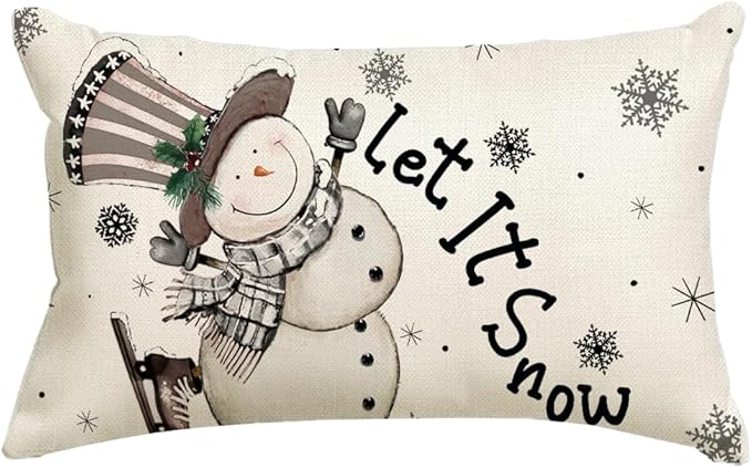 Link to Product: RABUSOFA Christmas Pillow Cover 12x20 Inch Snowman Snowflake Let It Snow Decoration Holiday Farmhouse Winter Lumbar Pillow Case Xmas Christmas Decor for Home Sofa Couch Gray