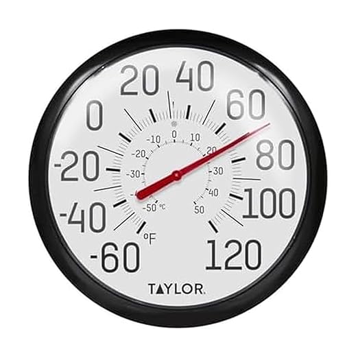 Link to Product: Taylor Big and Bold Wall Thermometer Indoor Outdoor Thermometer Wireless Thermometer with Easy to Read Numbers for Patio Pool and Indoor Areas 13.25inch Black