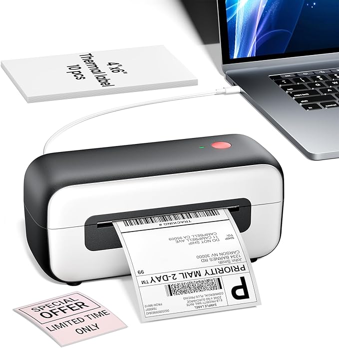 Link to Product: USB Thermal Label Printer 4x6 Shipping Label Printers for Small Business & Office B246D Printer Compatible with Windows Mac Linux Chrome Used for Amazon Ebay Shopify USPS Black&White