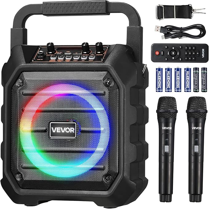 Link to Product: VEVOR Karaoke Machine for Adults 20W 6.5inch Portable Bluetooth Speaker with 2 Wireless Microphones LED Light TWS Function Handle Shoulder Strap Support Micro TF Card USB AUX for Home Party